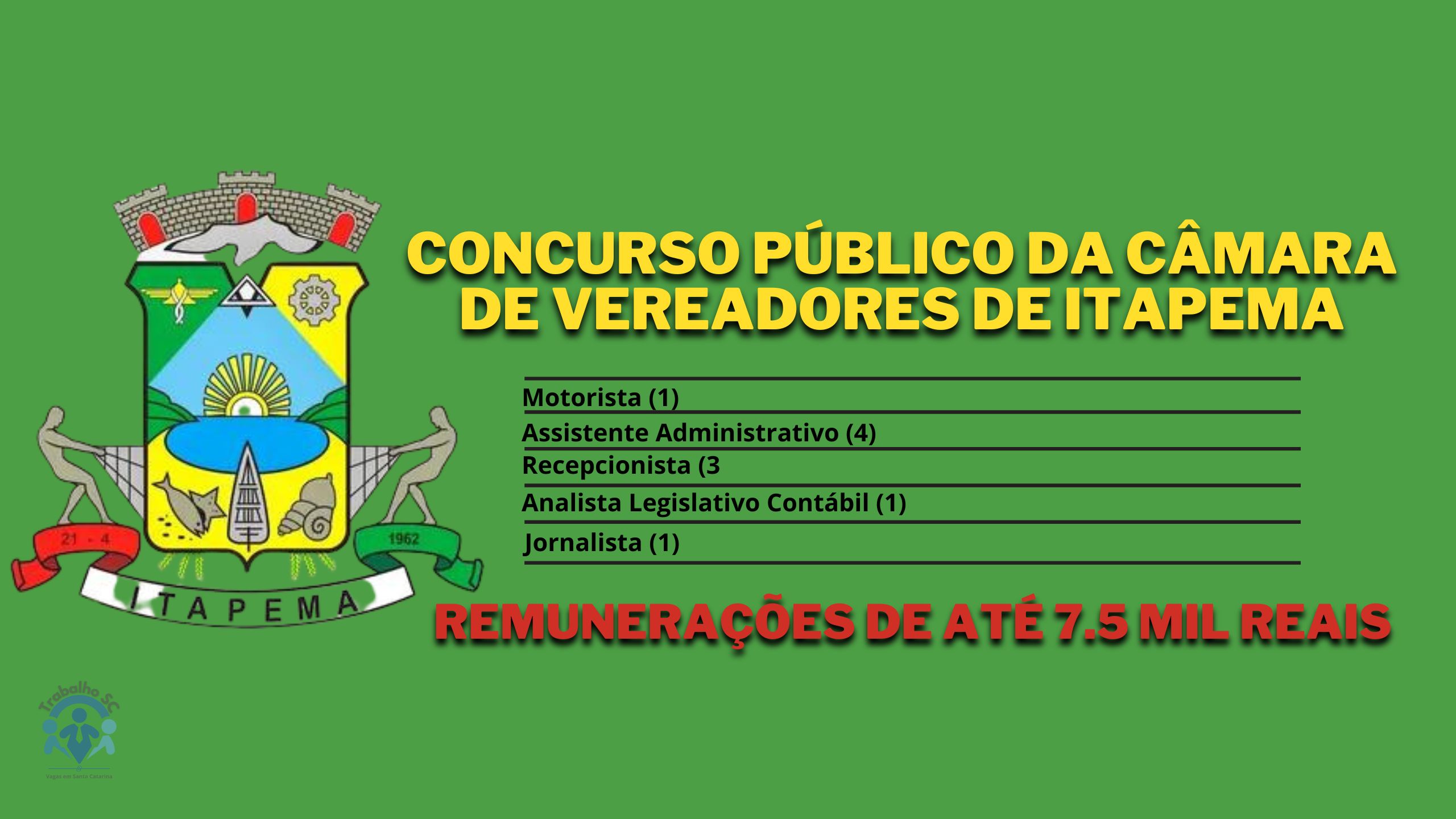 Saiba tudo sobre o Concurso Público da Câmara de Vereadores de Itapema e suas remunerações de até 7.5 mil reais.